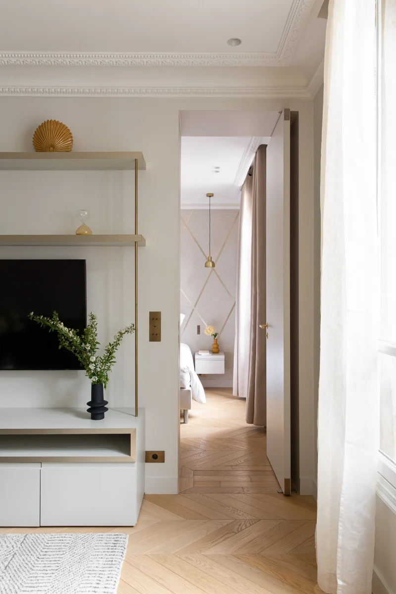 Located a few steps from the Avenue des Champs-Elysées, in the heart of the prestigious Golden Triangle, this lovely 45 sqm apartment offers a unique setting for your stays in Paris, as a couple or during a business trip.