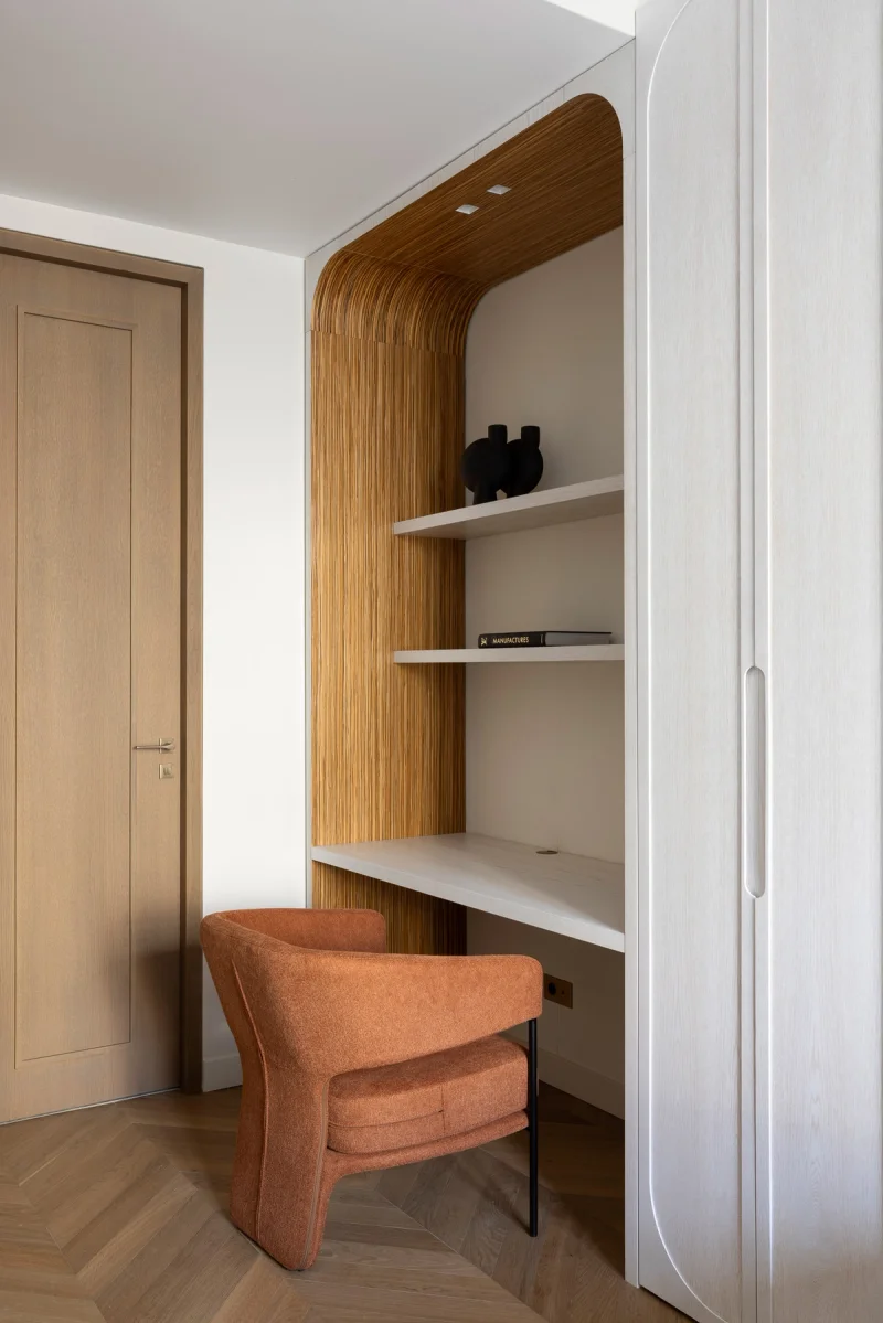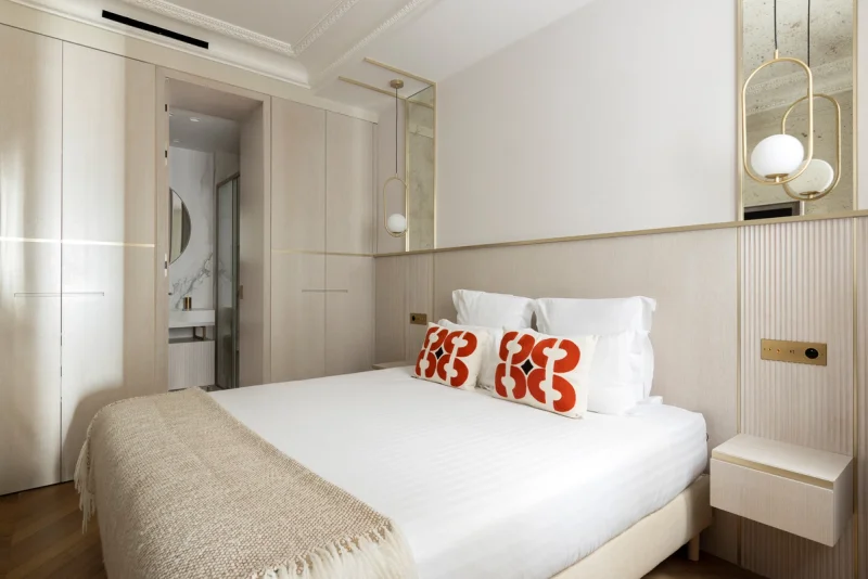Comprising a large, luminous master bedroom, with a small study that's as aesthetic as it is practical, and a second, smaller bedroom separated by a corridor, it offers the possibility of a pleasant stay for several people, while respecting the privacy and freedom of each.