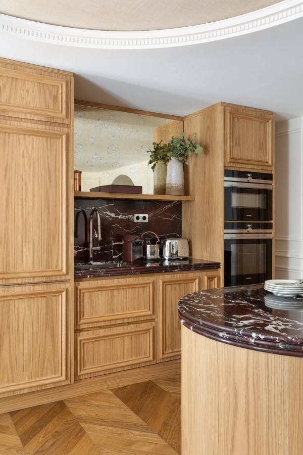 This atypical 90 sqm pied-à-terre has been completely renovated, and opens onto a welcoming, softly-colored living room...