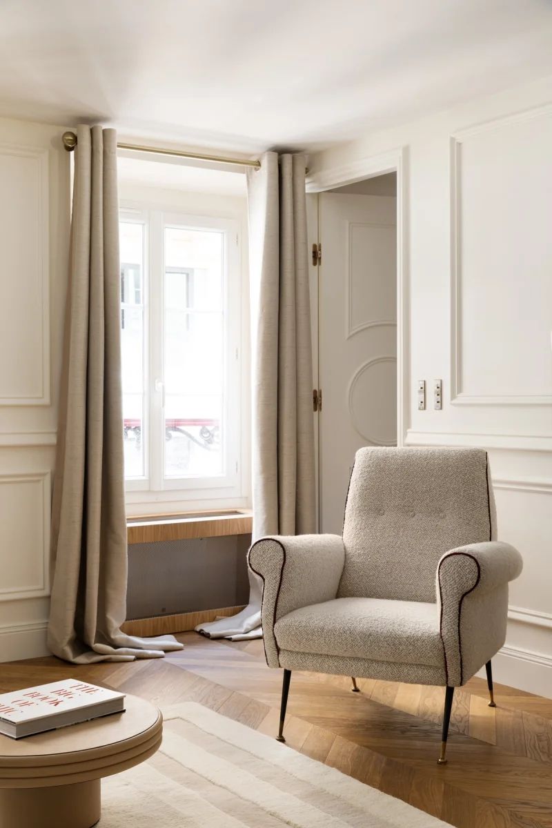 At the end of a peaceful cobbled courtyard, a few steps from the exquisite Place des Victoires and close to the Palais Royal, a beautiful spiral staircase leads us to the threshold of Victoire II.