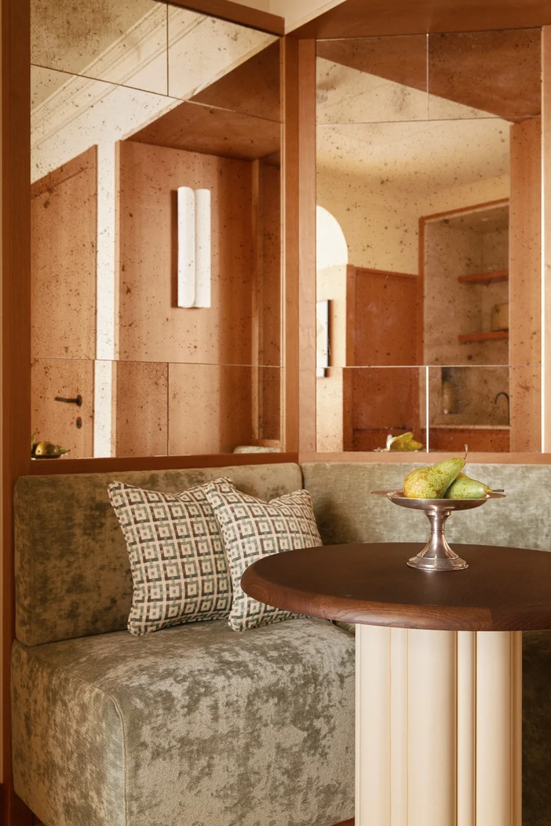 Located on the ground floor, Vintimille - Studio offers a space that is both functional and cosy. As you enter, a fully equipped kitchen opens onto a dining nook with a built-in bench, while mirrored accents bring depth to the room...