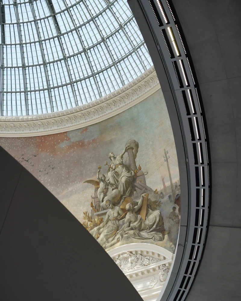 On display in the Orangerie of the Château de Versailles until September 29, 2024, is this monumental embroidery, originally designed by artist Eva Jospin for a Dior haute couture show. Measuring 105 meters in length, this piece invites viewers into a poetic forest woven entirely of silk, cotton, and jute threads, depicting branches, lianas, and plant motifs. A true technical achievement, this vibrant and original work of art was created in India by the craftsmen of the Chanakya workshop. It was inspired by the embroidery room in Rome's Palazzo Colonna, as well as Virginia Woolf's novel “A Room of One's Own”.