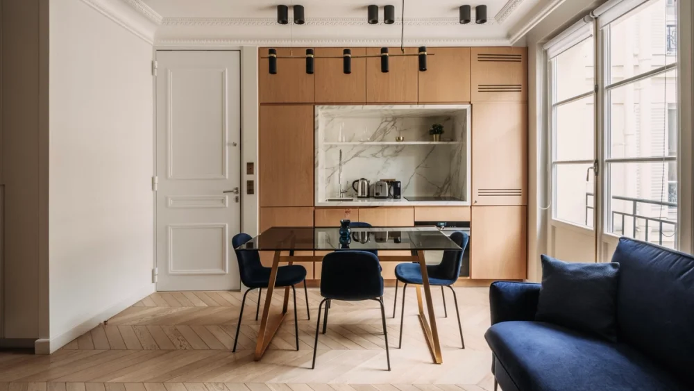 This spacious three-bedroom apartment just off the Champs-Elysées can host up to 8 guests, making it the perfect choice for a family trip or for friends traveling together. King-size beds, walk-in showers, and elegant materials like natural stone and marble make for a welcoming atmosphere. The location is ideally situated close to Metro Line 13 and the Rugby World Cup village at Place de la Concorde.