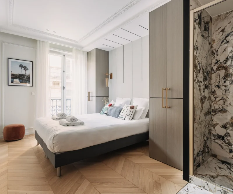 Donnant sur l’élégante avenue Franklin Roosevelt dans le 8ème arrondissement, à quelques pas de l’avenue des Champs-Elysées, cet appartement de 70 m² combine harmonieusement les codes de l'architecture parisienne et le confort contemporain.