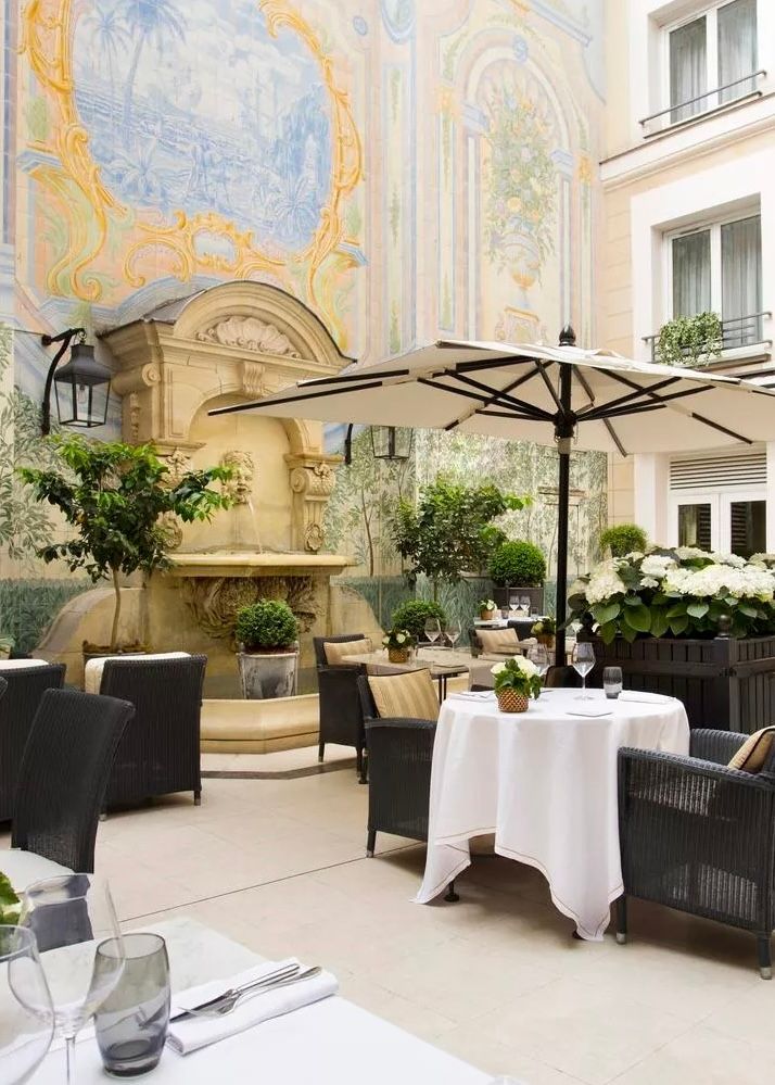 Le Baudelaire, chic et inventif, récompensé d'une étoile au Michelin, propose une nouvelle approche de la cuisine raffinée en mettant l'accent sur les légumes.